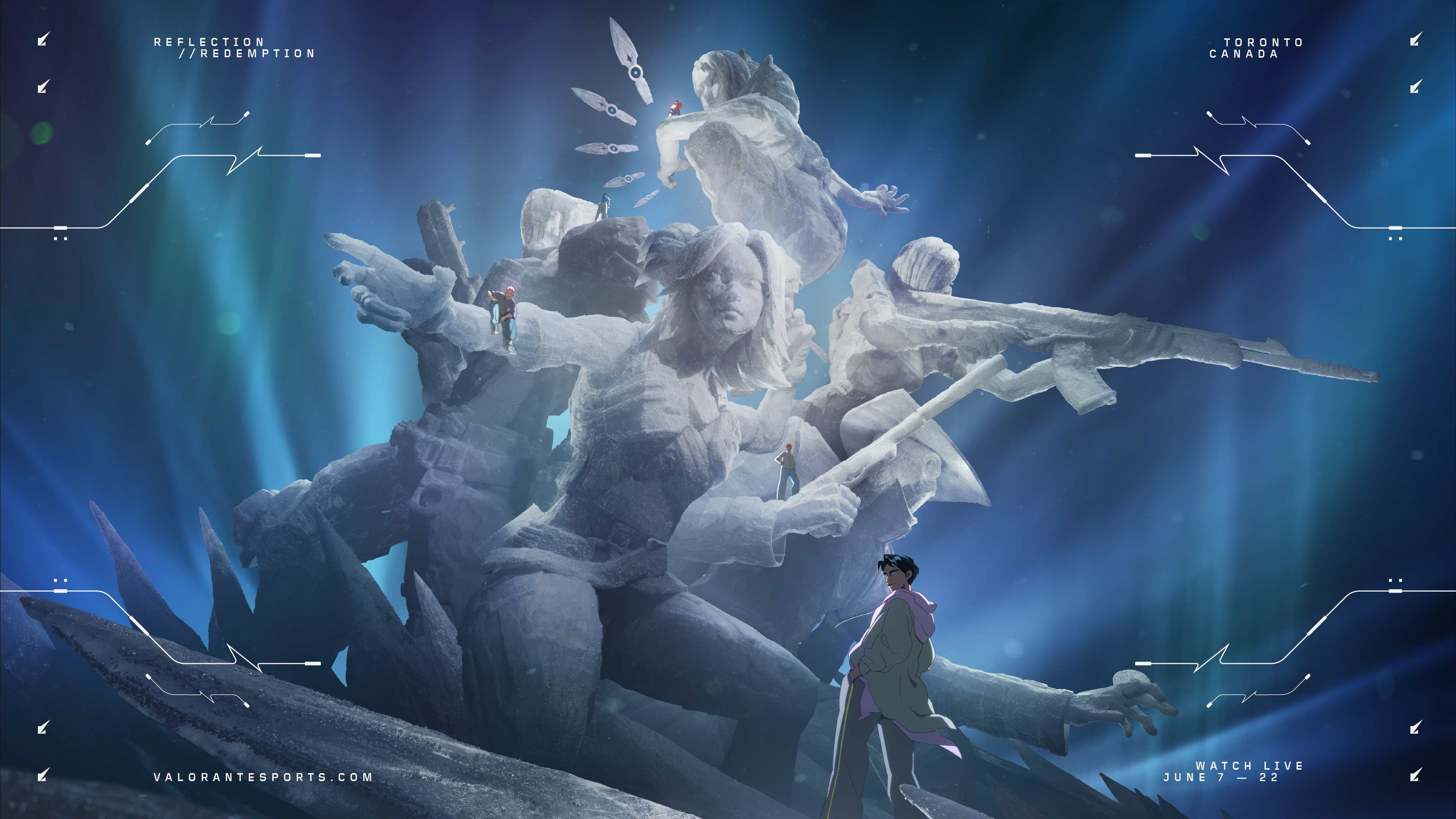 While Wizz Design led the visual direction and 3D Key Artworks for this year’s cinematic, we were responsible for creating the design and branding for VCT Masters Toronto—custom typography, graphic elements, logos, animations, and broadcast assets.